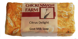 Soap with essential oils from Chickenmash Farm. Let me introduce you to our Citrus Delight Goat Milk Soap