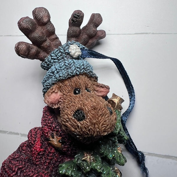 Bring woodland charm to your tree with this delightful 3-inch moose ornament from Boyds Bears. Crafted in detailed resin, this whimsical character clutches a miniature Christmas tree, capturing the playful spirit of the season. Perfect for collectors and nature lovers alike, it's a conversation-starting addition to any holiday display. Hang it proudly and let this cheerful moose spread festive cheer year after year.